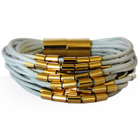 این دستبند در سه رنگ قهوه ای، مشکی و عسلی و نماد طلایی خدا عرضه شده است.